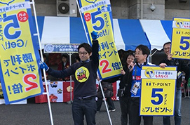 地元水戸のプロサッカーチームJ2水戸ホーリーホックを「ホーリーブック大作戦」として応援をしています。全選手掲載オリジナルブックカバーやしおりのプレゼント、試合で勝利すると翌日対象店でのTポイント2倍、書籍売上の1%が水戸ホーリーホック強化支援金になる「応援デイズ!」など、総力を挙げて取り組んでいます。またTポイントジャパンと連携したサンクスマッチ、Tポイントが貯まる対象店舗でも、勝利した翌日はポイントが2倍になるなど、地元を巻き込み、地元でしかできないユニークな応援をしています。川又書店県庁店では限定商品取扱店水戸ホーリーホックオフィシャルグッズショップを展開しています。